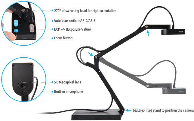 - 8 megapixelová USB kamera s vysokým rozlišením pro snímání dokumentů, kreseb, učebnic, 3D objektů a obrazovek
