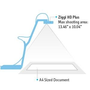 Vizualizér Ipevo Ziggi-HD Plus se může pochlubit širokým zorným polem, který umožňuje zachytit větší plochu. Velkoformátové kresby, učebnice a mnohem víc mohou být zachyceny v jediném pohledu, nikoliv po částech. Maximální rozměr snímané plochy je 343 × 254 mm (pohodlně A4+ formát). Ve srovnání s předchozími generacemi Ziggi budete mít ještě větší prostor pro pohodlnou prezentaci vašich záměrů.